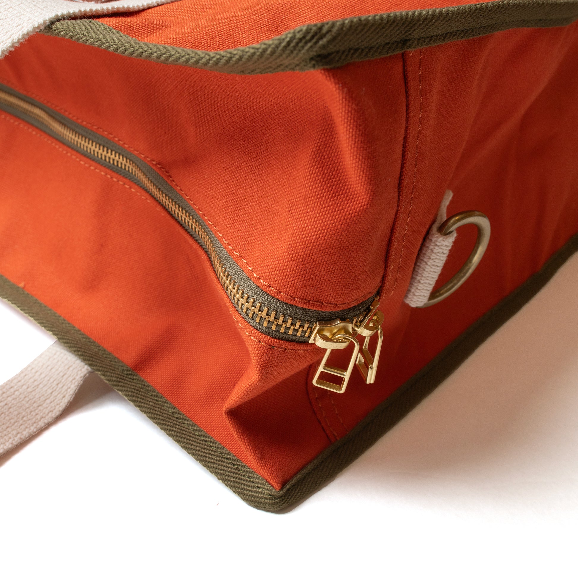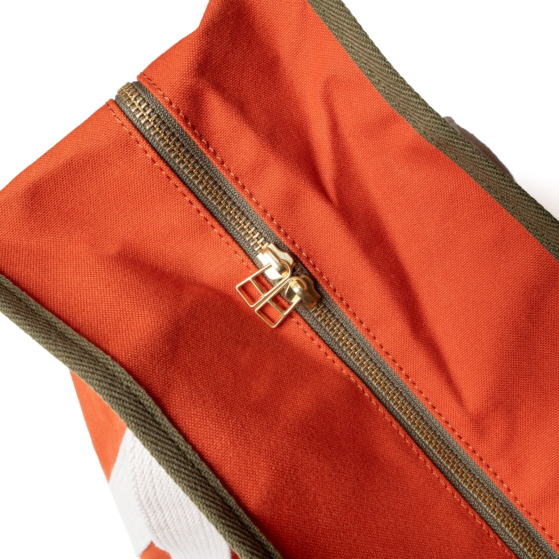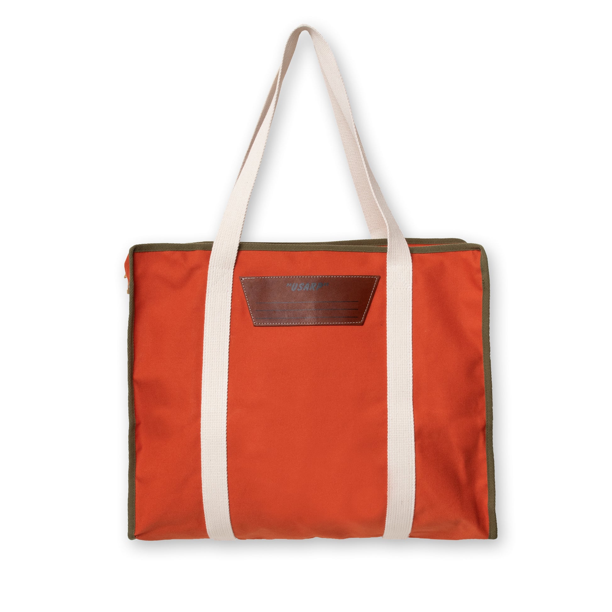 There are obscure vintage references and there are common ones. The USARP was the US Antarctic Research Program and was a civilian and military joint research program started in 1959. These bags were apparently issued to the civilian department. I believe these bags were made by The Diamond Brand which made the Yucca Pack for the Boy Scouts of America in the 1930s. I adore the color palette so we went with Alberton 18 oz basic duck fabric in a great dusty orange color. Which looks very much like the original bag. Heavyweight cotton webbing was used for the handles, and side pull. Japanese leather reinforcements, name plate, and brass D-rings by Kamishiraishi Brass in Tokyo. These are extra special sand-cast brass D-rings with a nice weight to them and gives the bag an extra special detail that’ll age nicely. Completely made in Japan. UNBRANDED