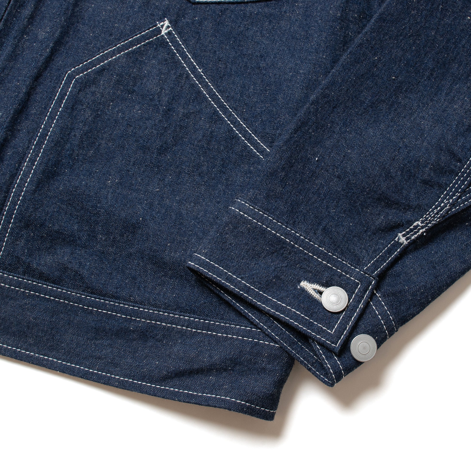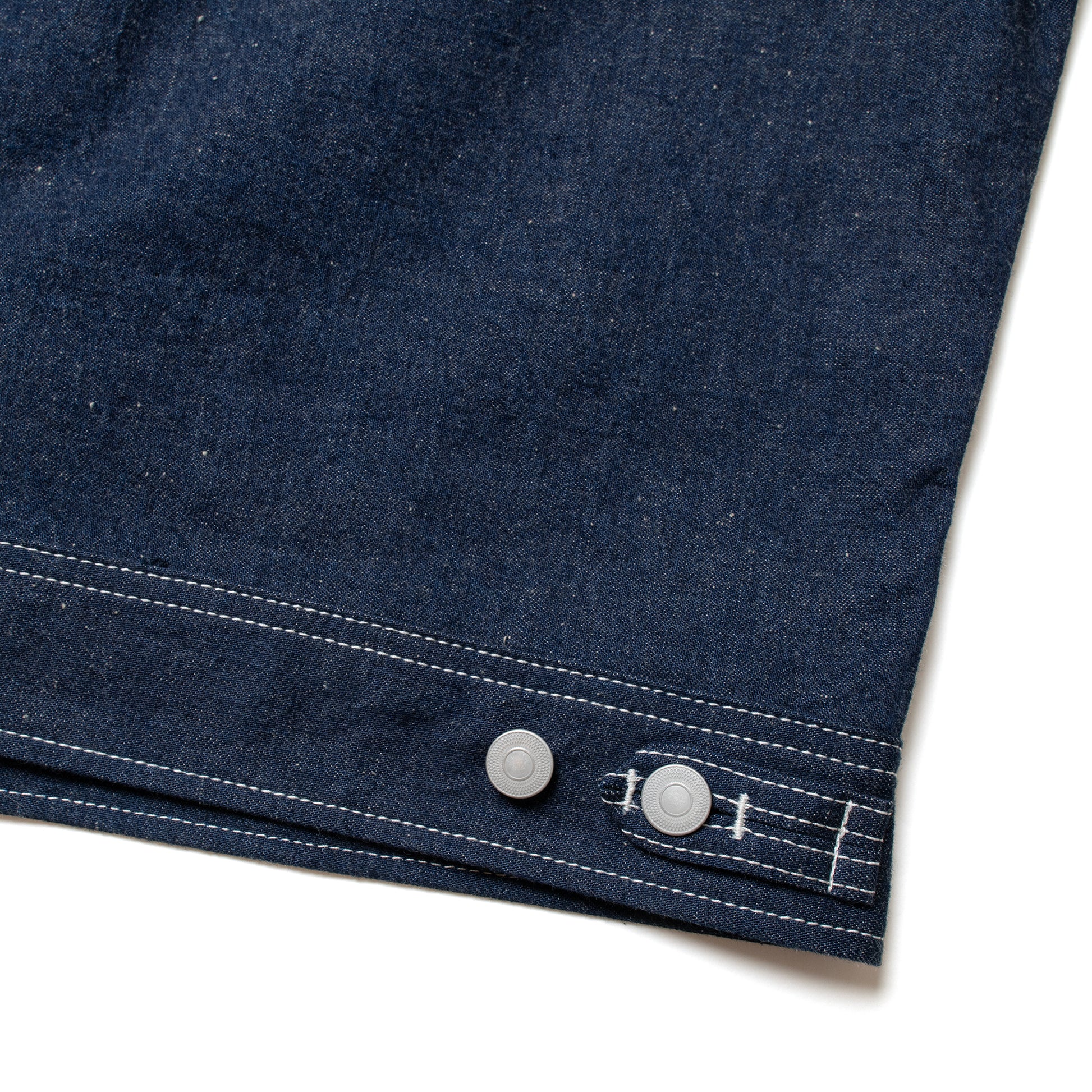 Made from Japanese milled selvedge Jelt denim, gingham indigo seersucker check, or premium Suvin cotton. and silk 10oz denim. Design is imported from an old Can't Bust 'em Jacket in my collection. Slightly wider arm holes, sleeves have a slightly longer length. Universal fastener.