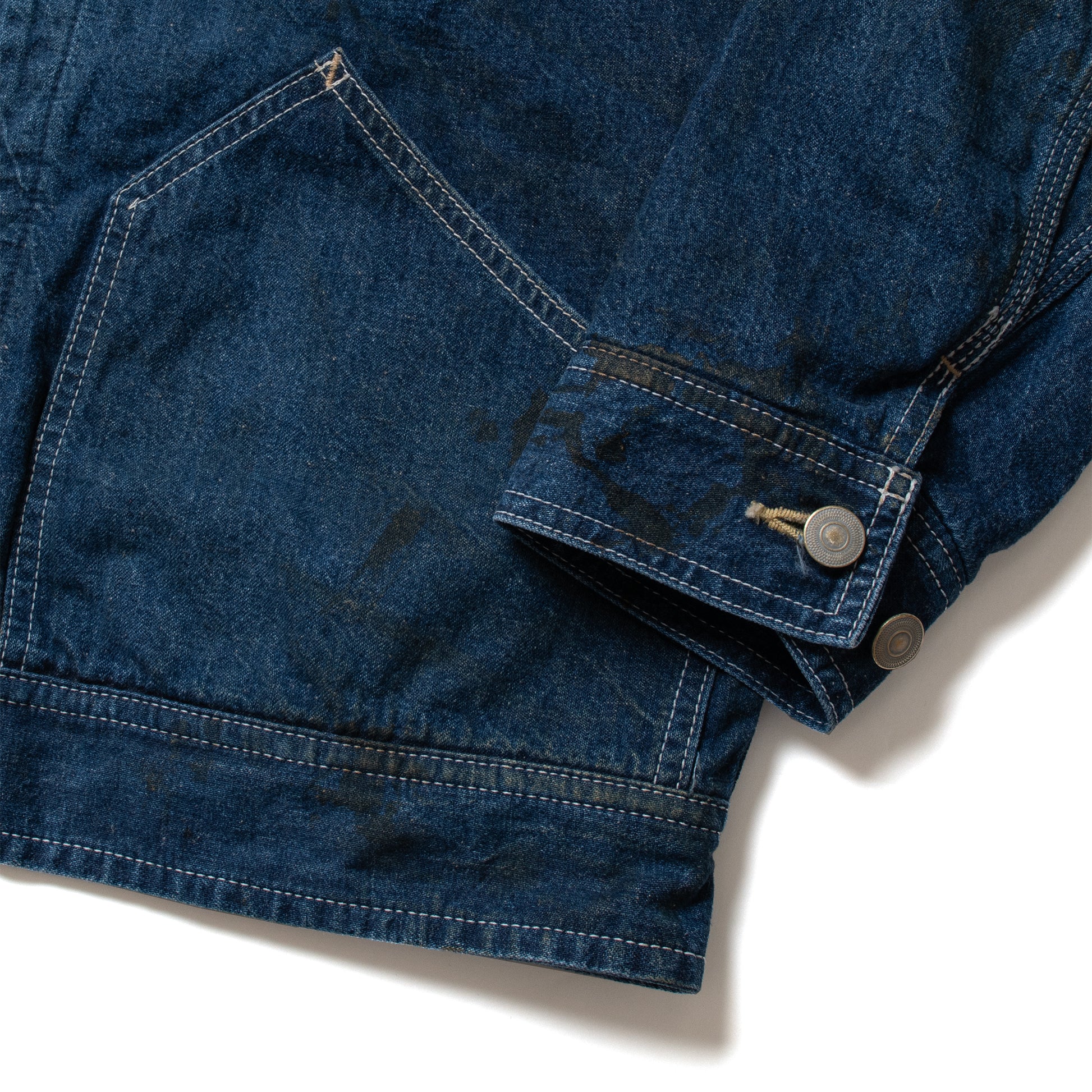 デニムジャケットはワードローブの定番アイテムです。1940年代のワークウェアであるジップフロントジャケットに着想を得て、現代風にアップデートしました。100%コットン製の岡山セルビッジ・ジェルトデニムをベースに、追加バリエーションを展開。ゆったりとしたユニセックスシルエットで、寒い季節の重ね着や季節を問わない汎用性を実現。タックボタン調節機能とスナップボタン付き胸ポケットを備えた時代を超えたデザイン。負荷がかかる箇所は全て三重ステッチ仕様。裾はダブルチェーンステッチ仕上げ。生地バリエーションには、プリシュランク加工済みウール混ブランケットライナー、高級感ある10オンススビン綿シルク混、インディゴ色シーサーカーギンガムチェックを用意。いずれも標準のワンウォッシュに加え、特別なオリジナルダストボウルウォッシュで提供