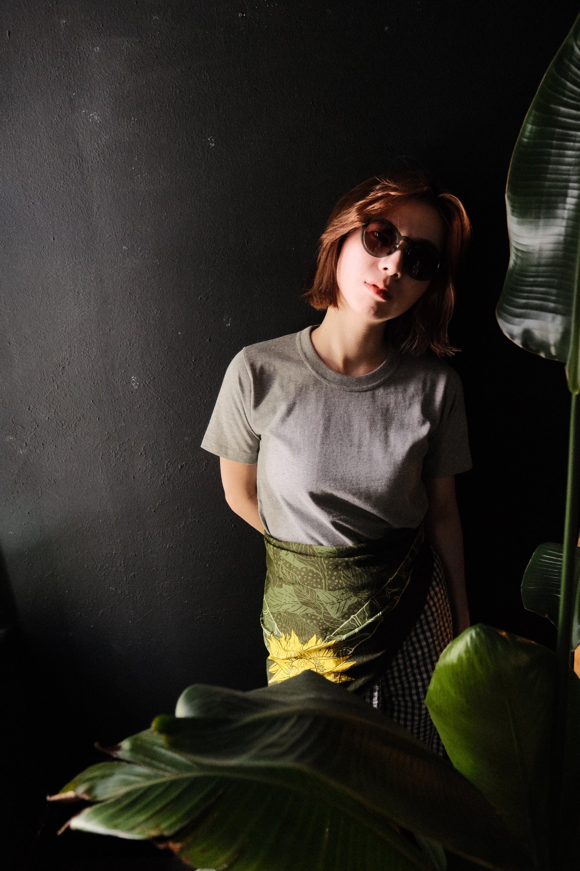 Made from 7.6 oz 100% cotton jersey on loop wheel machines in Wakayama. Standard fit. Perfect for working in the garage or playing in a garage band. All-season weight. Side seam sewn.