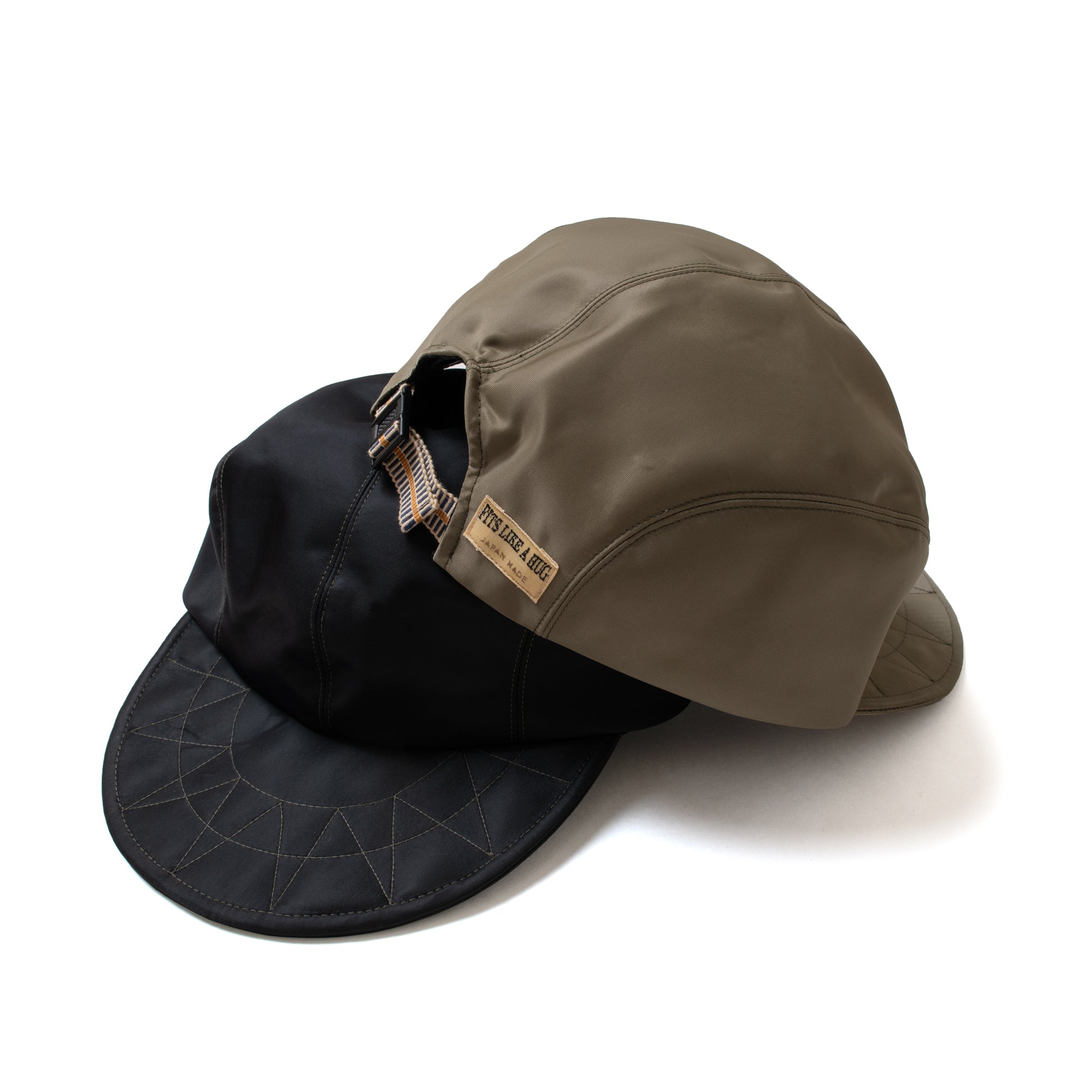 Made from thick and silky Japan made nylon. Vintage style stitching details sewn with contrasting OD green thread. Finished with a cotton Sanada cord adjuster. Lined with poly mesh. Sizes S and M. This is a special collab with Fit’s Like A Hug and Naranha, a Nara, Japan based specialty hat maker.